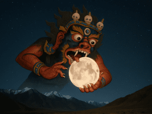 Eclipses are rare and mystical events in Ladakh. During a lunar eclipse, locals believe that a demon is trying to swallow the moon.